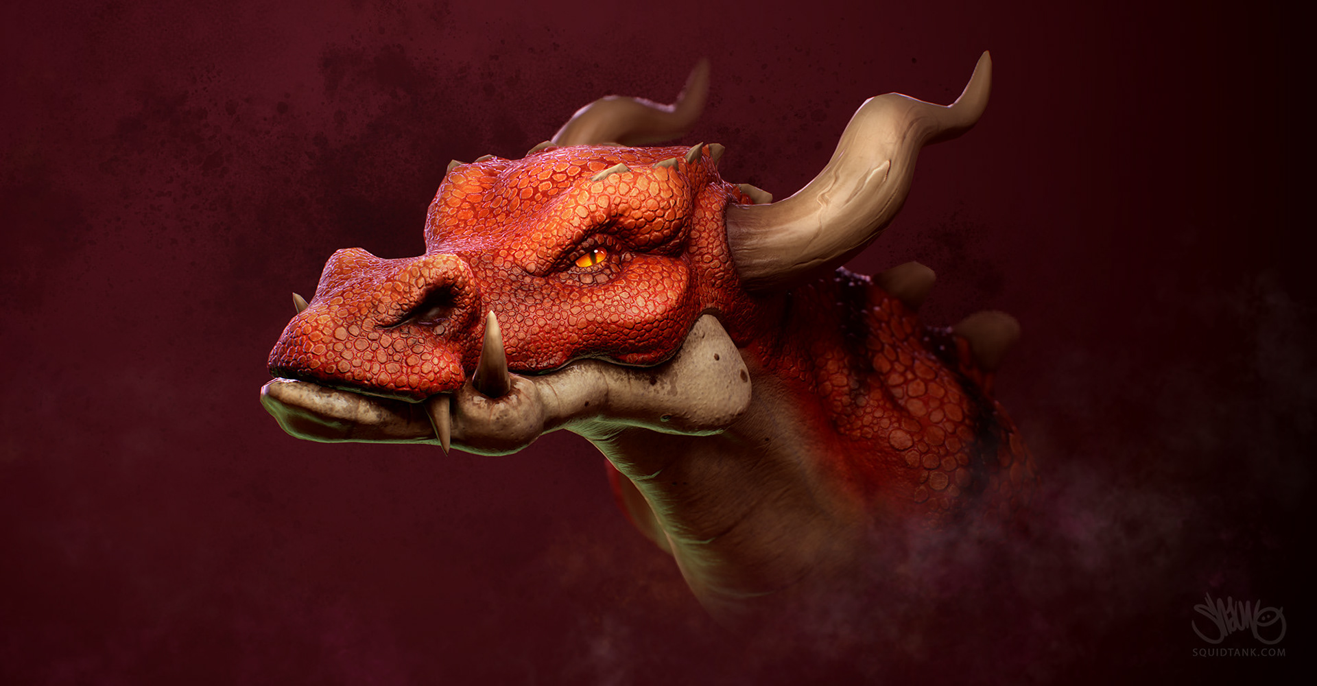 This Dragon Bust was a lot of fun to create and pushed me outside my comfort zone (stylistically speaking). I used custom alphas and VDMs in ZBrush to create the scales and spikes. The baked maps in Painter did most of the heavy lifting but there was still a lot of manual elements I got to add during the texturing phase (which I thoroughly enjoyed).