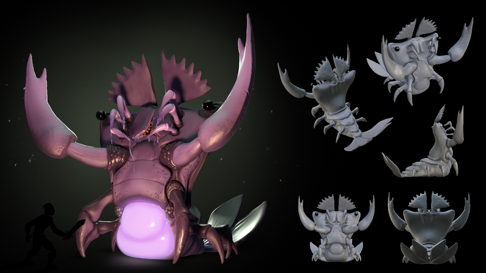 A quick monster sculpt I did one weekend, based off a Moreton Bay Bug. Sculpted and polypainted in ZBrush, rendered in Blender and post in Photoshop.